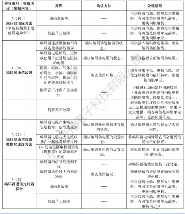 示教器檢查,伺服驅動器狀態(tài),檢查線路,緊固線路,檢查元器件必要時更換。